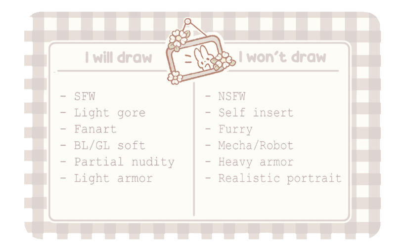 ** Private process:** Don't wanna spoil the surprise? I will not upload screenshots showing considerable parts of the illustration process. I'll upload the art on my gallery or socials with watermark in a lower resolution a day after I email you the file. If you need me to wait for a specific date, say it on the form. +$30 ~ $70